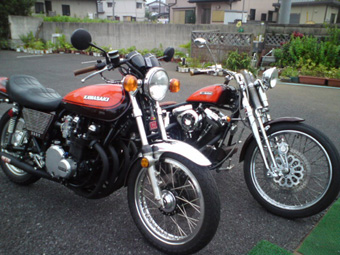 ![]() じゃ〜〜〜〜ん! ついに完成したよ。ワクワクその2が。 車検と重なり 時間が掛かってしまったが、本日届いたよ。 どうです? このカラー。 そうです、男KAWASAKI純正の「火の玉カラー」です。 ハーレーをこのカラーにしてるのは たぶん日本でオレだけだと思うよ。 ![]() Z2と並べて記念撮影してみたら、何だか子供のようなハーレー・・・。 今日から 『Z3』 と命名しました。 約 3ヶ月ぶりに跨ったら、自分のバイクじゃないみたいな違和感。 (ステップって こんなに遠かったっけ? 重いし) 駐車場まで移動しただけなのに、 コケそうになってもーた(汗)。 最近カブしか乗ってないから、ヘタクソになってるよ。 出来上がると 梅雨明けが待ち遠しいですな。 今年の夏は Z3 をガンガン乗り回すぞ〜〜。 さて本日 pm11:00キックオフ! ワクワクするけど、期待せずに応援しましょうね。 |