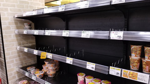 ![]() 12日。 台風直撃前の午前中、 イオンに行ってみた。(ヒマすぎて) 駐車場は ご覧の通りガラガラ・・・・。 ショッピングモールの方は休館しており、イオンのみ営業してたが、 ![]() 食料品売り場以外、人が見当たらない! 居るのは マネキンだけ。 なんか、映画で観たような光景。 ある日突然 人類が消滅・・・みたいな? ![]() ほんと、360度見回しても 人っ子一人いない・・・・ チト怖い。 そして、ウワサには聞いていたが、カップ麺コーナーはこんな感じ。 ![]() つか、売れ残ったカップ麺は よっぽど人気ないんだろな・・(苦笑) 可愛そうでした。 そして牛久の台風ピーク 23時に来ましたね! 映画を観てたんだけど、 気が散って集中できなかった。 とにかく 雨・風 ハンパない音。。。。。 自然が牙をむくと 人間なんてどうやっても勝てない。 被災された地区の皆様に向けた言葉が見つからない・・・ |